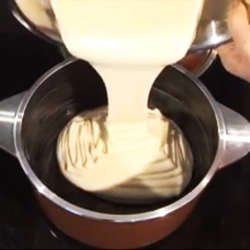 - Incorporamos la leche cuando estemos batiendo y revolvemos durante un minuto más.